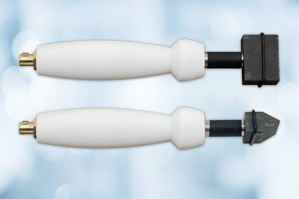 Komplett ausgestatteter PTFE-Handgriff mit Adapter und Anode zum Signieren bzw. Polieren von Edelstahloberflächen.
